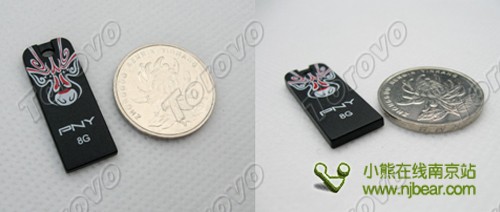 PNY臉譜盤體積為2.1mm高*12mm寬*30mm長,最薄之處只有2毫米,重量僅1.4g,是市面上最“迷你輕薄”的U盤之一。