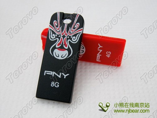 PNY臉譜盤有8GB和4GB兩款,分別采用成熟穩重的黑色及喜慶的紅色,這種配色與中國傳統文化的象征色彩一脈相承。筆者評測的這款正是其中黑色8GB的臉譜盤。