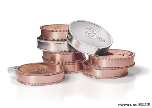 以獨特設計聞名的存儲廠商LaCie日前就推出了一款硬幣U盤,真名叫作CurrenKey,有8GB“鎳幣”和4GB“銅幣”兩款。如果不是伸縮USB接口稍微丑了一點,整個硬幣厚度也稍微大了一點的話,這樣的U盤還真有那么一點以假亂真的效果。
