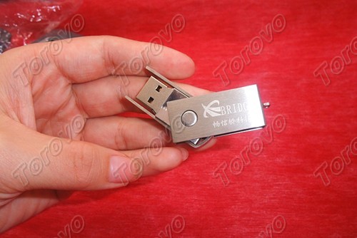 該U盤采用時下流行的USB旋轉設計,并且旋轉設計得到升級,需要把鋼環拉出才能夠旋出USB接口,這種鋼環設計更好地保護了USB接口。鋼環拔出時手感流暢,正面的LOGO采用激光雕刻工藝、客戶Logo清晰可見。做工非常精致。