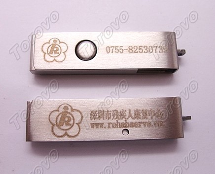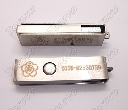 此款U盤(pán)是可360度旋轉(zhuǎn)的金屬旋轉(zhuǎn)U盤(pán),尺寸是:30mm x 12mm x 5mm,U盤(pán)簡(jiǎn)單大方,金屬材質(zhì),激光雕刻Logo,永不掉色。性能卓越。